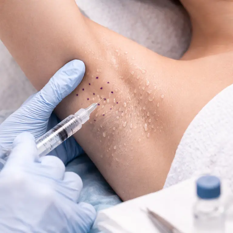Ved Skienklinikk tilbyr vi en effektiv og trygg behandling mot hyperhidrose i form av injeksjoner. Behandlingen reduserer aktiviteten i svettekjertlene og gir ofte svært god effekt i områder som armhuler, håndflater og fotsåler. Resultatene merkes vanligvis etter få dager, og effekten varer i 6–12 måneder, avhengig av område og individuell respons.